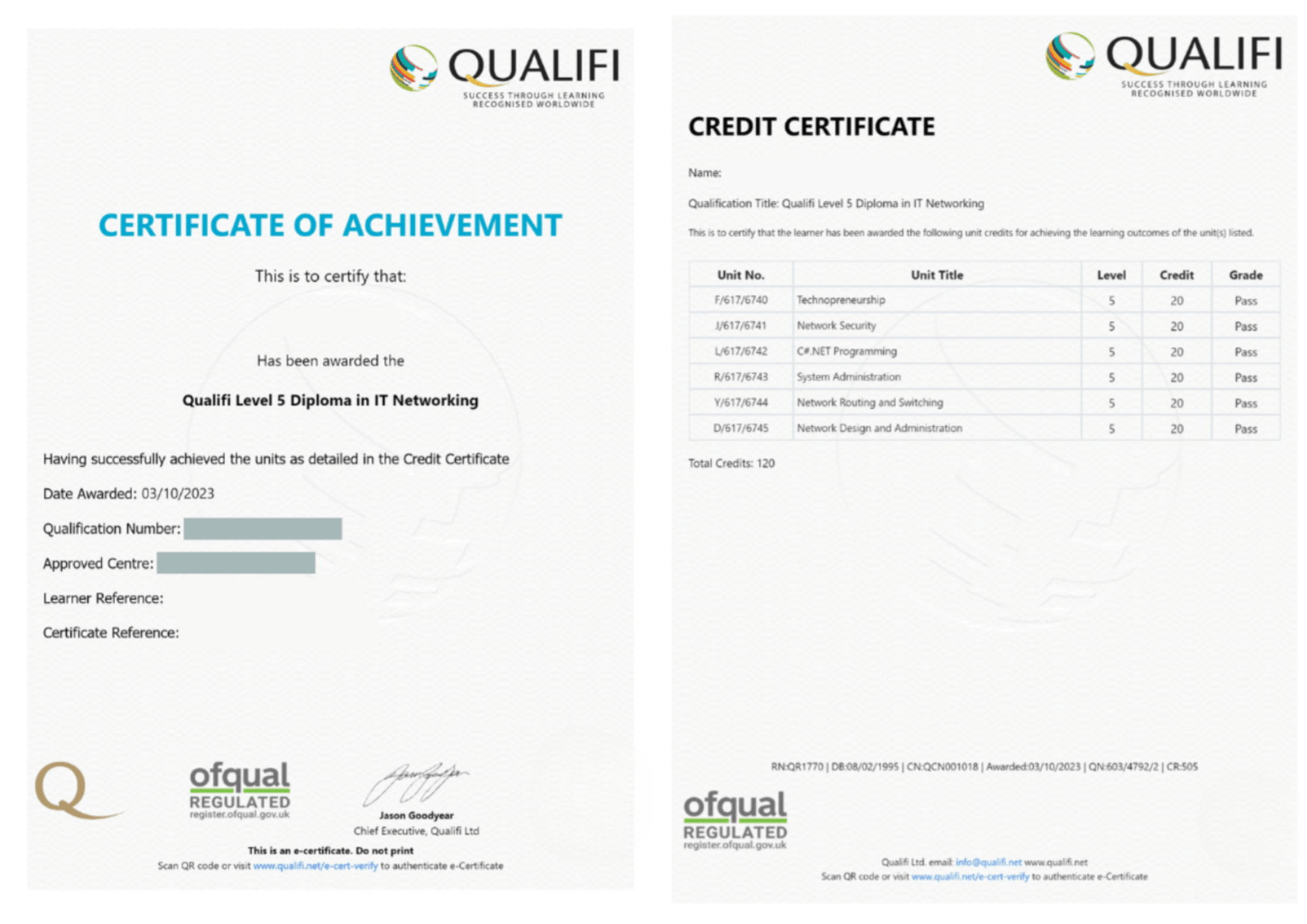 - Qualifi Level 5 Diploma in IT Networking được kiểm định với mã Ofqual UK.Gov 603/4792/2. Tham khảo thông tin kiểm định tại TẠI ĐÂY.
