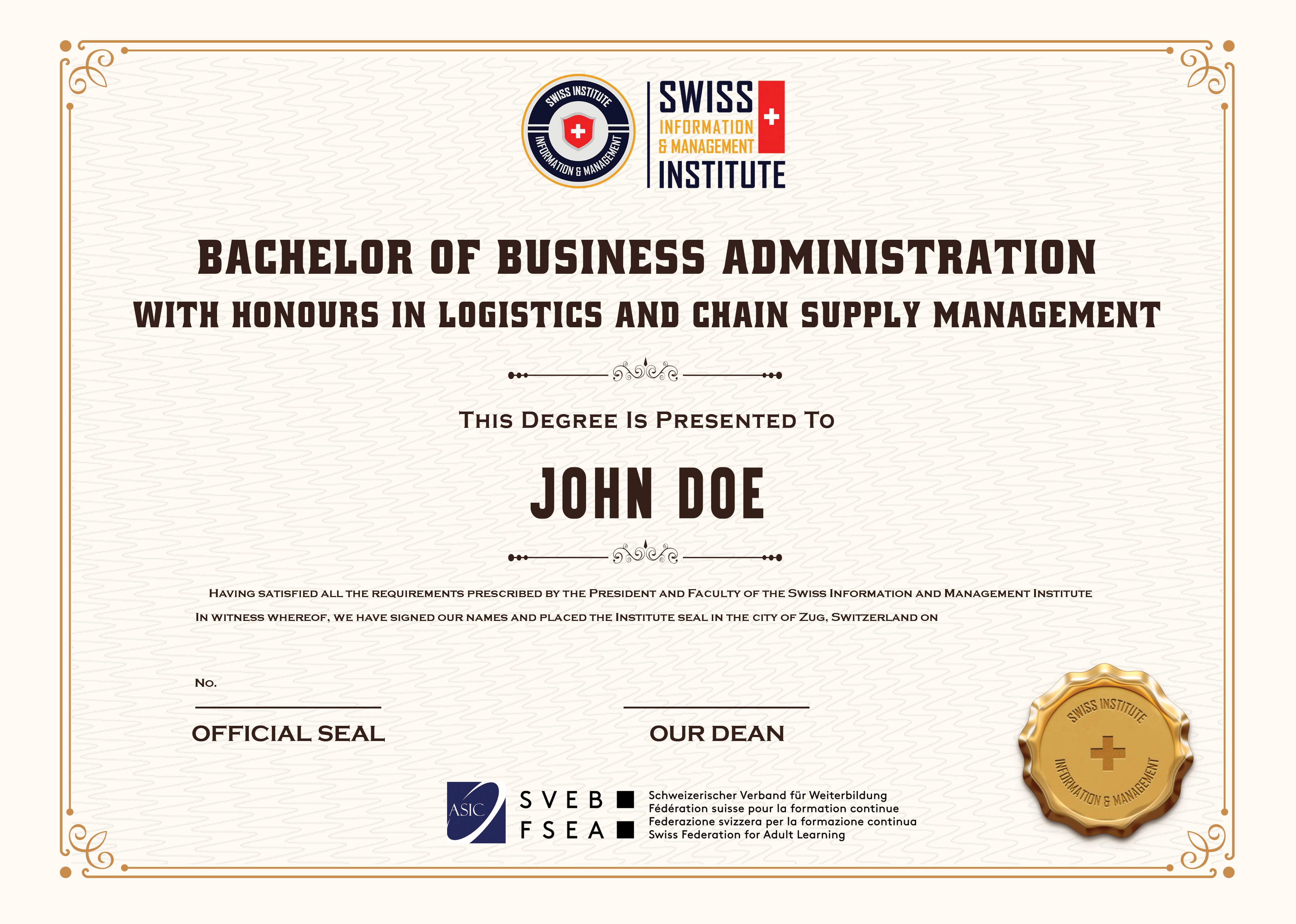 - Giai đoạn cuối: SIMI Swiss Bachelor of Business Administration (with Hons) in Logistics and Supply Chain Management (Thẩm định Kiểm định và Công nhận TẠI ĐÂY)
