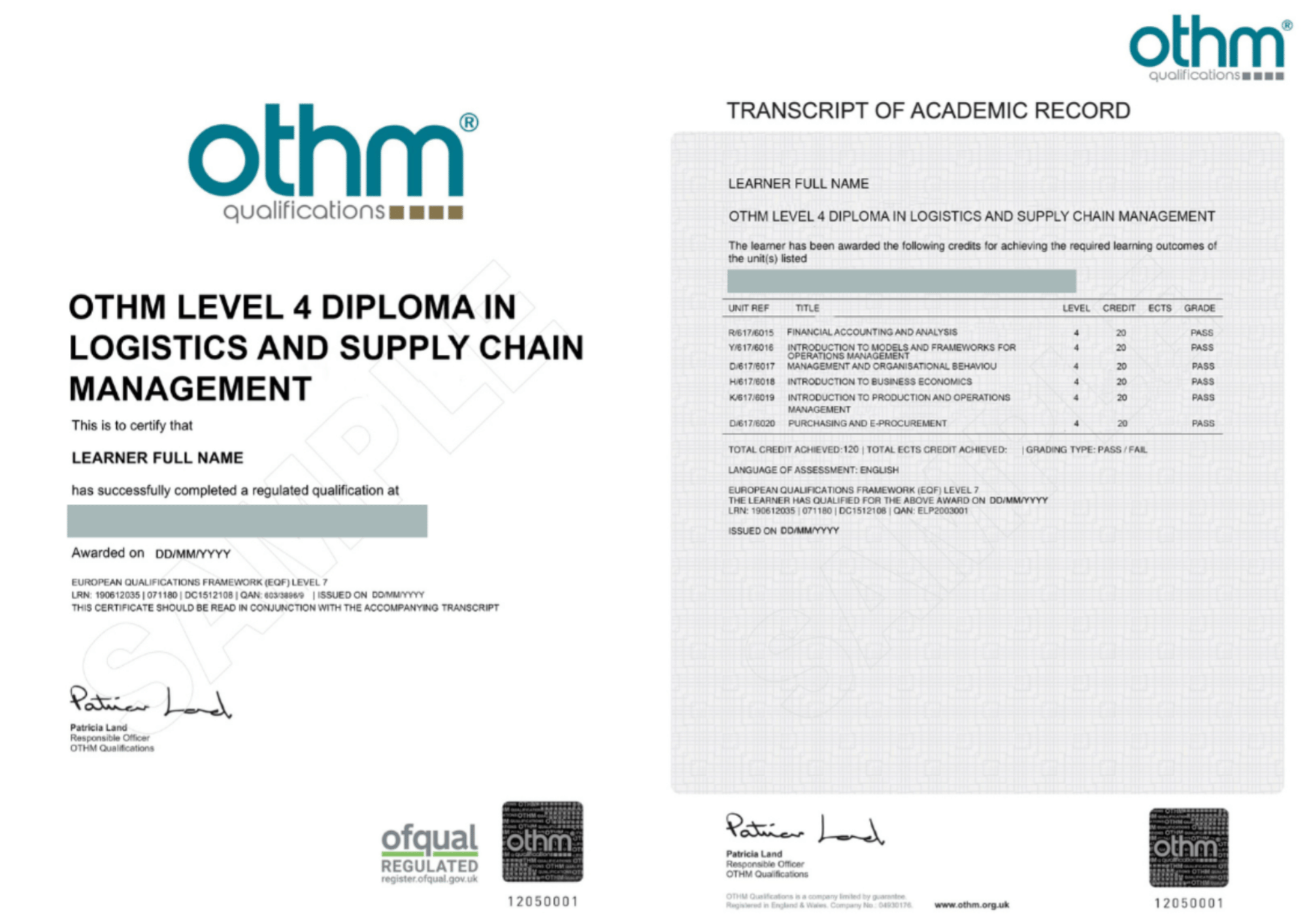 - OTHM Level 4 Diploma in Logistics and Supply Chain Management - mã Ofqual UK.Gov: 610/0857/6