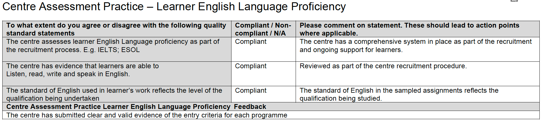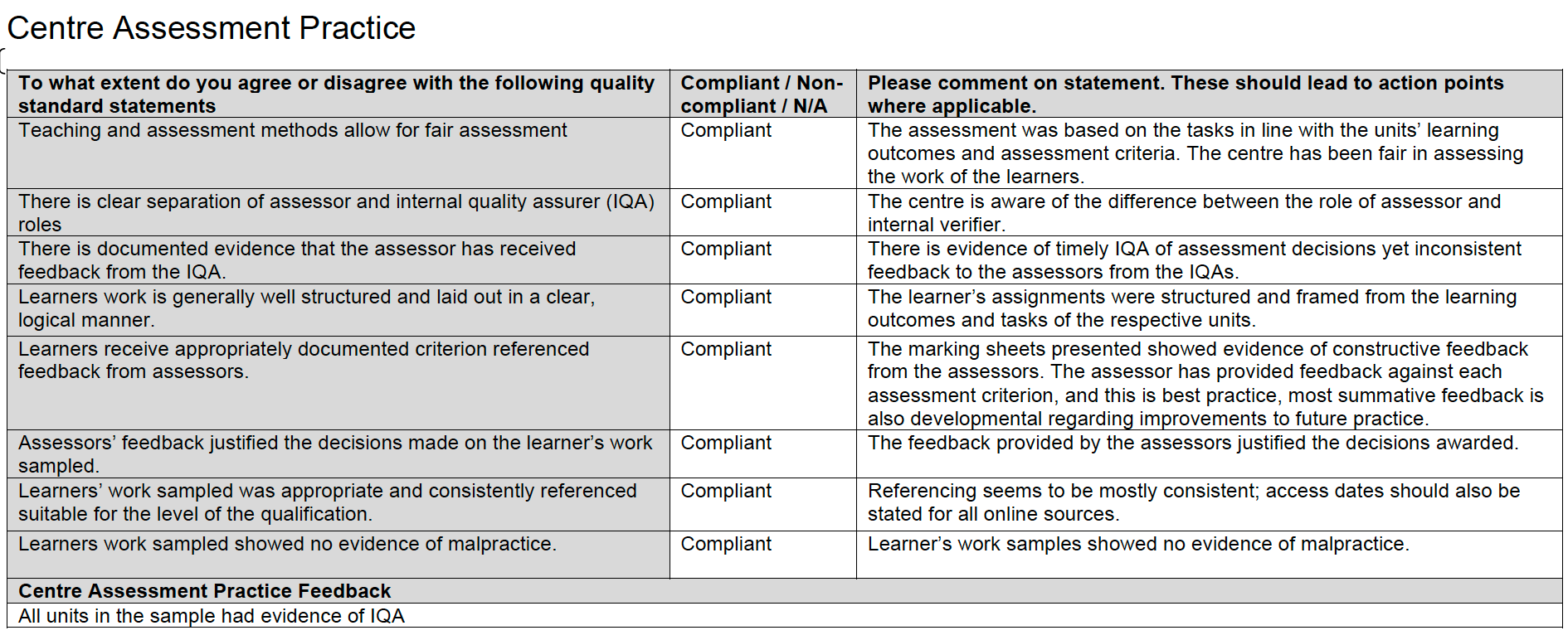 - Có chứng cứ chuẩn hóa (standardisation) giữa người chấm (assessors) và người kiểm định nội bộ (IQAs), và phải bảo đảm đạt.